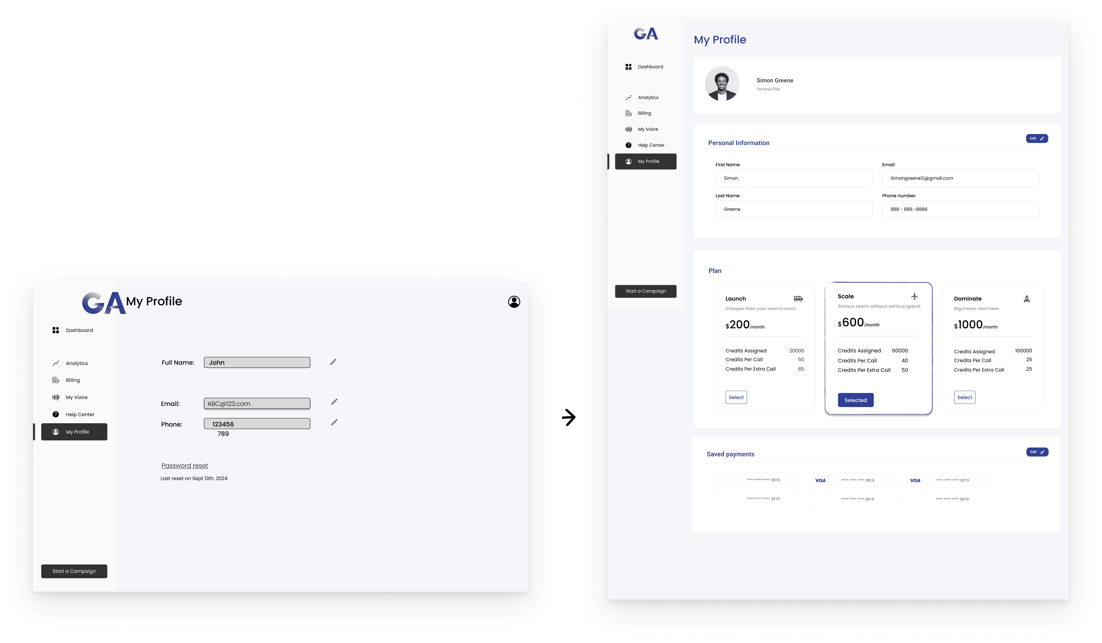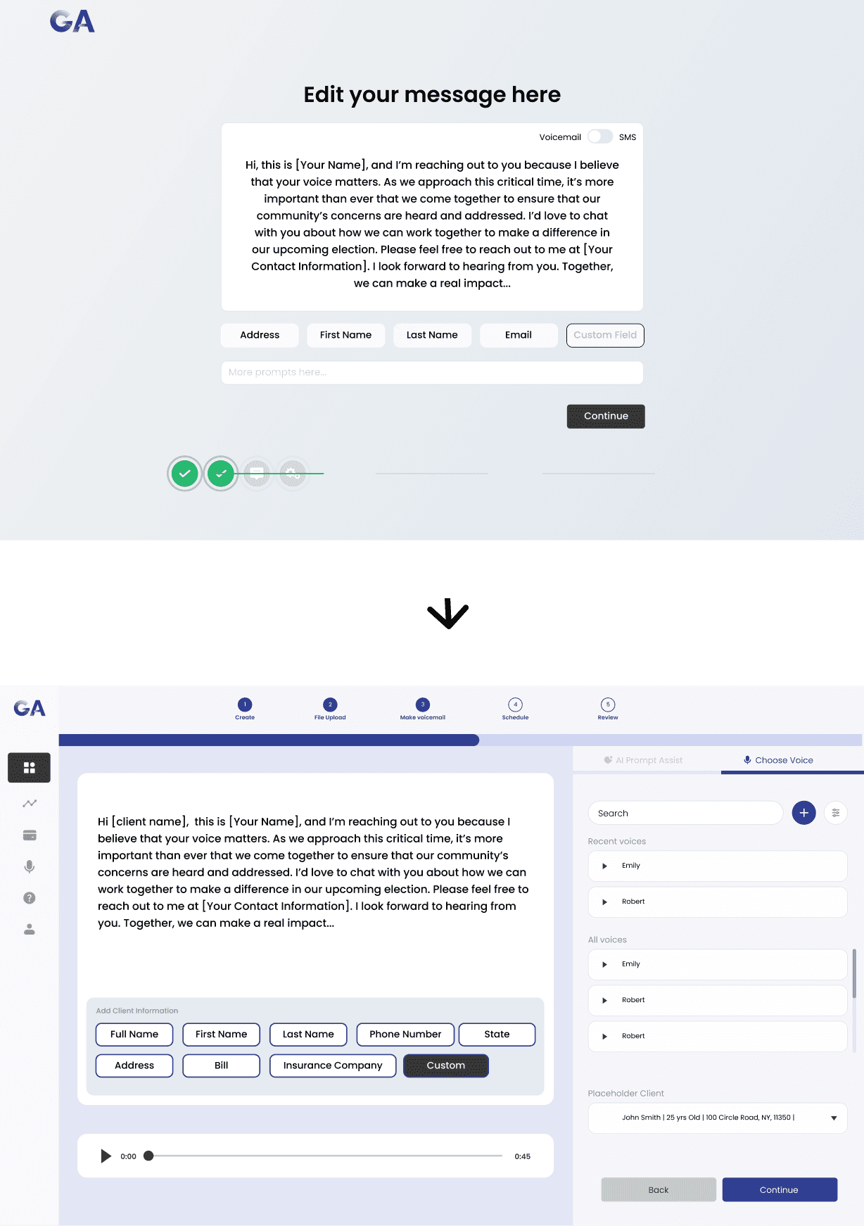 Simplified Gabriel AI’s core workflow to help users create, schedule, and launch personalized voice campaigns with confidence