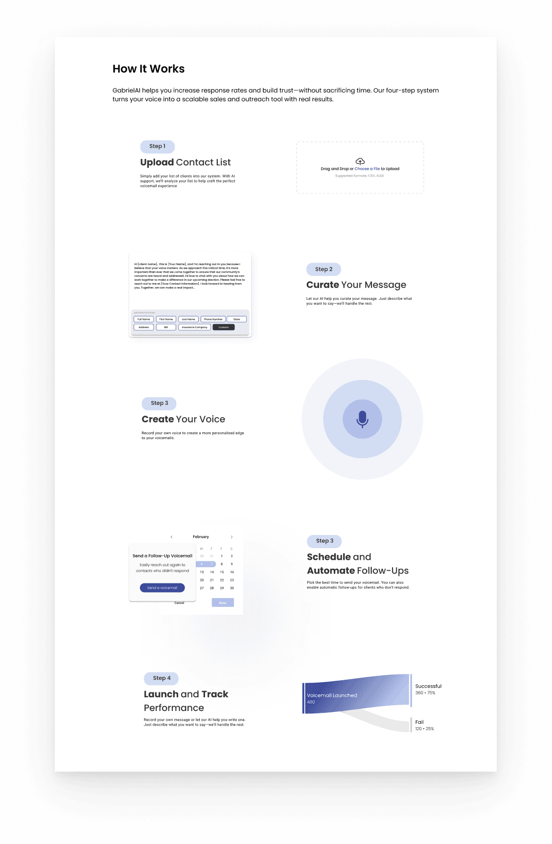 Introduced a step-by-step explanation of the product to immediately ground users in what Gabriel AI does and how it worksReorganized information architecture