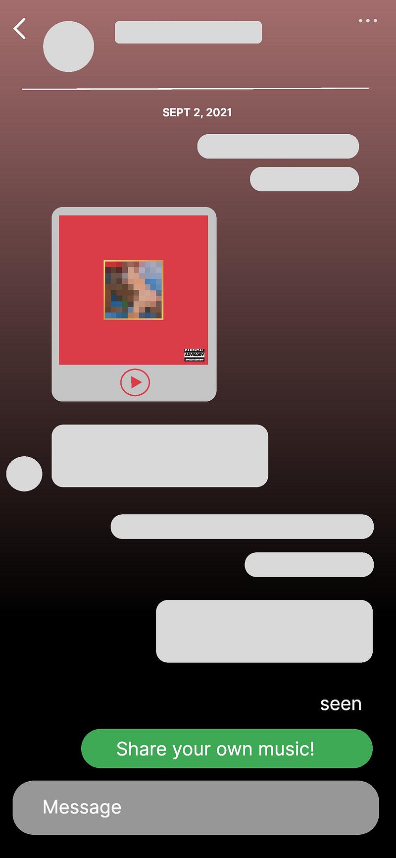 Ability to send music through messages and throughout the app