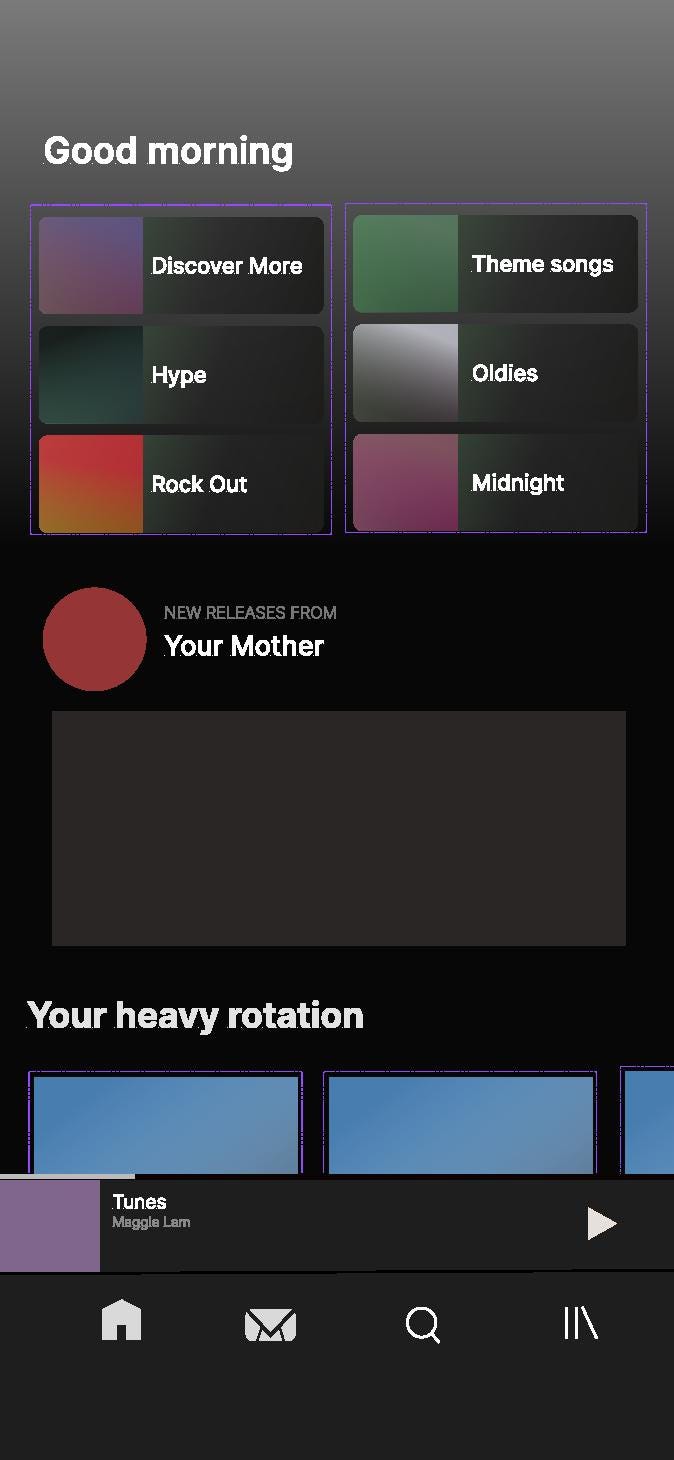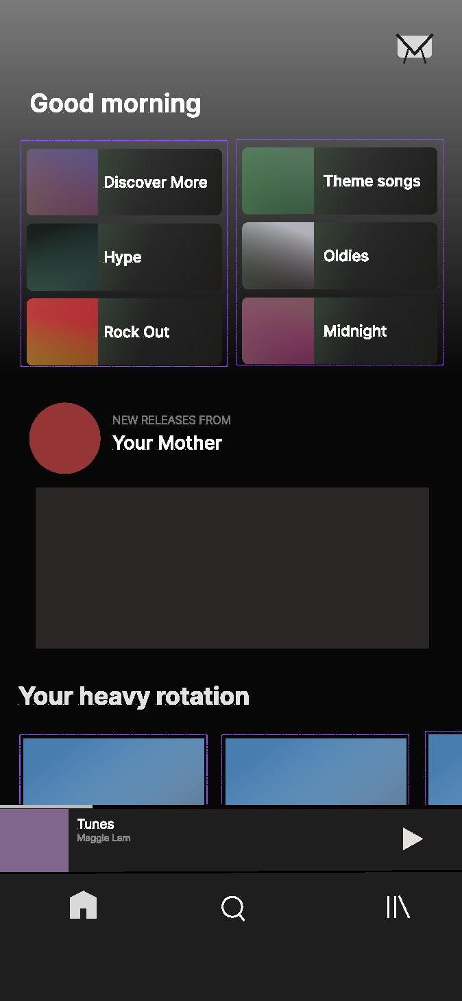 I struggled with the placement of the icon. I thought that having the entryway be at the bottom would differ from Spotify’s current design too much. But, on the other hand, putting the entry way on the homepage at the top right would be too limiting and confusing for the users. I decided that having the icon at the bottom would make it easier and quicker to access.